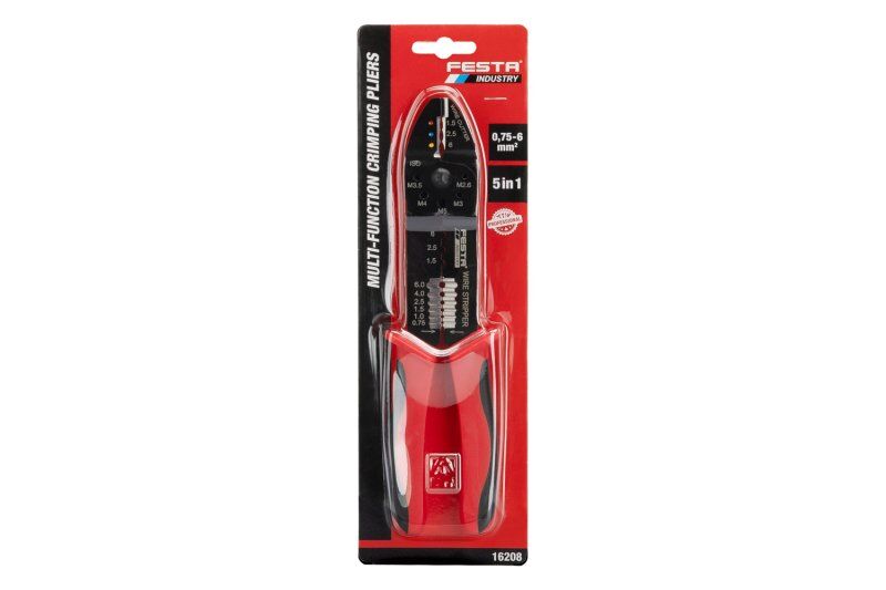 profesionální multifunkční kleště 5 v 1 se speciálními čelistmi pro střih, střih metrických šroubů, odizolovávání, lisování/krimpování izolovaných a neizolovaných koncovek měkčené rukojeti pro pohodlný úchop a stisk jedním nástrojem pokryjete široké spektrum prací při elektroinstalaci izolované koncovky 1.5, 2.5, 6.0 mm / neizolované koncovky 1.5, 2.5, 6.0 mm / střih metrickým šroubů M2.6, M3, M3.5, M4 a M5 / odizolovávání 0.75, 1.0, 1.5, 2.5, 4.0 a 6.0 mm + B16 : B19 Více informací