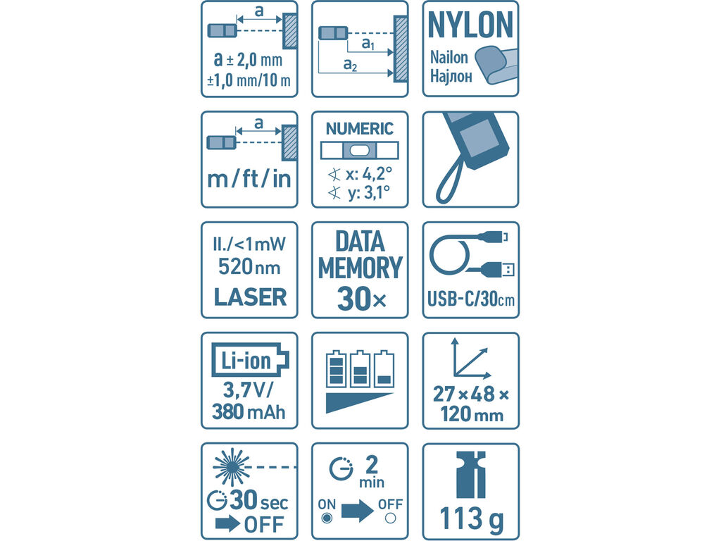 | přesnost | +-2mm (+-1mm/na každých 10m měř. vzdálenosti) |
