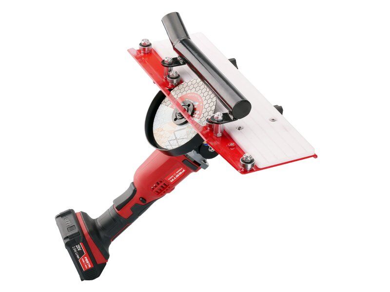 nástavec - "SLIDER" na úhlovou brusku pro řezání dlažby nebo obkladů pod úhlem 45 st. na tzv. kamenické rohy vhodné na všechny typy úhlových brusek 115 a 125 mm - sejměte ochranný kryt kotouče úhlové brusky a pevně upevněte úhlovou brusku do nástavce, po-té připevněte řezný kotouč - max. 125 mm valivá ložiska pro snadný a plynulý pojezd, ochranná kluzná vrstva proti poškrábání dlaždice, přidávná rukojeť pro stabilnější úchop a přesnou práci pro řezání za mokra i za sucha - při suchém řezání možnost připojení vysavače součástí balení je čerpadlo s hadičkou s rychloupínáním pro mokré řezání - při mokrém řezání je možné použít jen úhlovou brusku akumulátorovou nebo s krytím min. IP54 ! DOPORUČENÍ - vzdálenost řezu od hrany by měla být minimálně 1,5 mm ! Instruktážní video Více informací