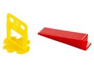 praktický set spon a klínů pro přesné pokládání dlažby - obkladů distanční spony jsou součástí uceleného systému nivelace - přesného pokládání - dlažeb a obkladů nahrazují běžné obkladačské křížky - zajišťují stejnou spáru mezi dlaždicemi a zároveň v kombinaci s nivelačními klíny 37175, 37176 a kleštěmi 37177, 37178 zajistí stejnou výšku dlaždic po celé ploše jednotlivé rozměry - konkrétně 1, 1.5, 2, 3, 4, a 5 mm distančních spon, jsou barevně odlišeny, pro snadnou přehlednost a zamezení záměny spon při použití spony lze použít pro obklady - dlažby maximální tloušťky 12 mm, spotřeba spon na 1 m2 v závislosti na velikosti dlaždice, je uvedena v doplňkovém obrázku spony jsou vyrobeny z kvalitního plastu, profil spony zaručuje mechanické odlomení po zaschnutí (min. 24 hod popř. dle informací výrobce lepidla) přesně v daném místě u základny spony tak, aby nedošlo - jak k poškození dlažby, tak i k vyčnívání zbytku spony ve spáře dlažby aplikace klínů pomocí kleští srovná dlaždice, po zaschnutí se horní část spony s klínkem odstraní - bílou gumovou palicí nebo ukopnutím velkokapacitní balení 400 kusů spon a 200 kusů klínů, praktická papírová krabice - snadné odebírání, manipulace, uskladnění a přehlednost na pracovišti Více informací