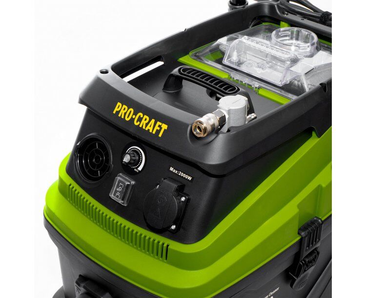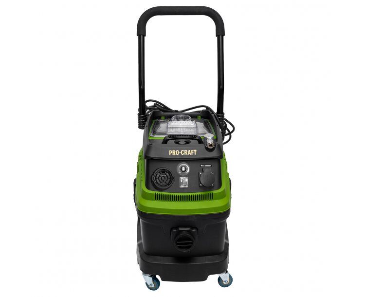 Průmyslový vysavač Procraft VP2000 je určen k mokrému i suchému vysávání. Je možné ho použít na staveništích, dílnách truhlářských a lakovacích provozech, ale i jako domácí vysavač, nebo k vysávání auta. Je vhodný pro odstraňování třísek, pilin a sádrového prachu. Vysavač má 4 m sací hadici a telekopicky nastavitelnou ocelovou trubku Silný motor s příkonem 1600 W zaručuje vysoký sací výkon o 18kPa a dokáže tak účině vysát prach ze strojů a těžší nečistoty ze stavby. Poradí si s rozlitou vodou, kterou vysává do nádoby (čištění koberců). Plynulou regulace sací síly, manuální oklep prachových filtrů. Rychloupínací spony usnadní výměnu pytlů. Automatický systém zapínání integrovanou zásuvkou 230V včetně funkce doběhu usnadní práci. Vysavač je dobře pojízdným díky kombinaci dvou velkých kol a dvou otočných, vybaven pohodlnou rukojetí pro přenášení. Součástí dodávky je odsávací hadice, hepa filtr, teleskopická kovová trubka, hubice, sáčky a kola. Balení karton.