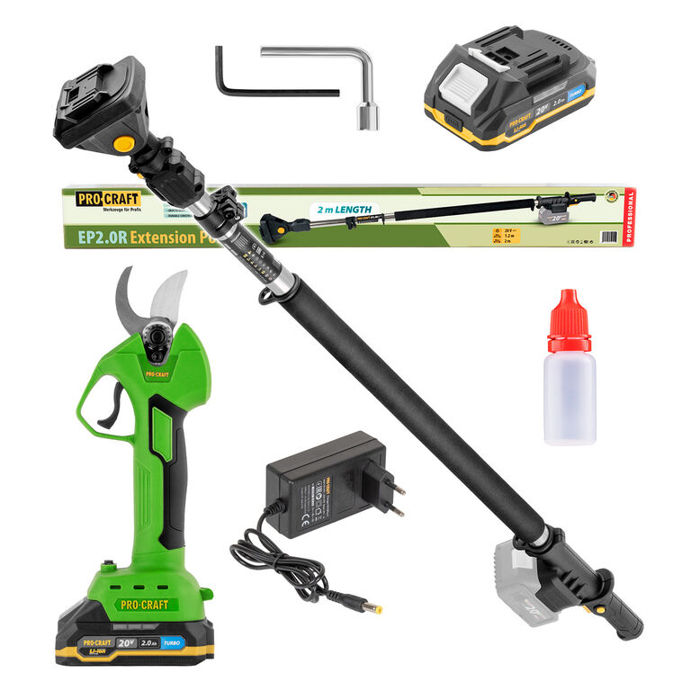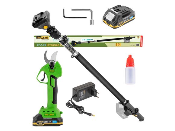Sada aku nůžky na větve Procraft ES32Li a prodlužovací nástavec EP2.0R představuje praktické řešení pro pohodlné prořezávání stromů a keřů jak u země, tak ve výšce – a to bez žebříku a bez námahy. Díky aku provozu získáváte volnost pohybu po celé zahradě, zatímco prodlužovací nástavec umožňuje bezpečný dosah i do vyšších partií koruny stromů. Ideální volba pro každého, kdo chce pracovat rychle, přesně a s minimální únavou.
