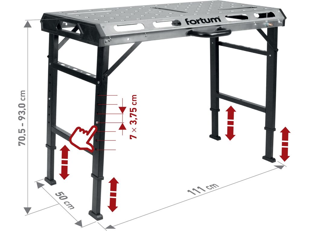 Máte otázky k produktu: stůl svařovací přenosný, 107x53cm, výška 70-93cm FORTUM?
